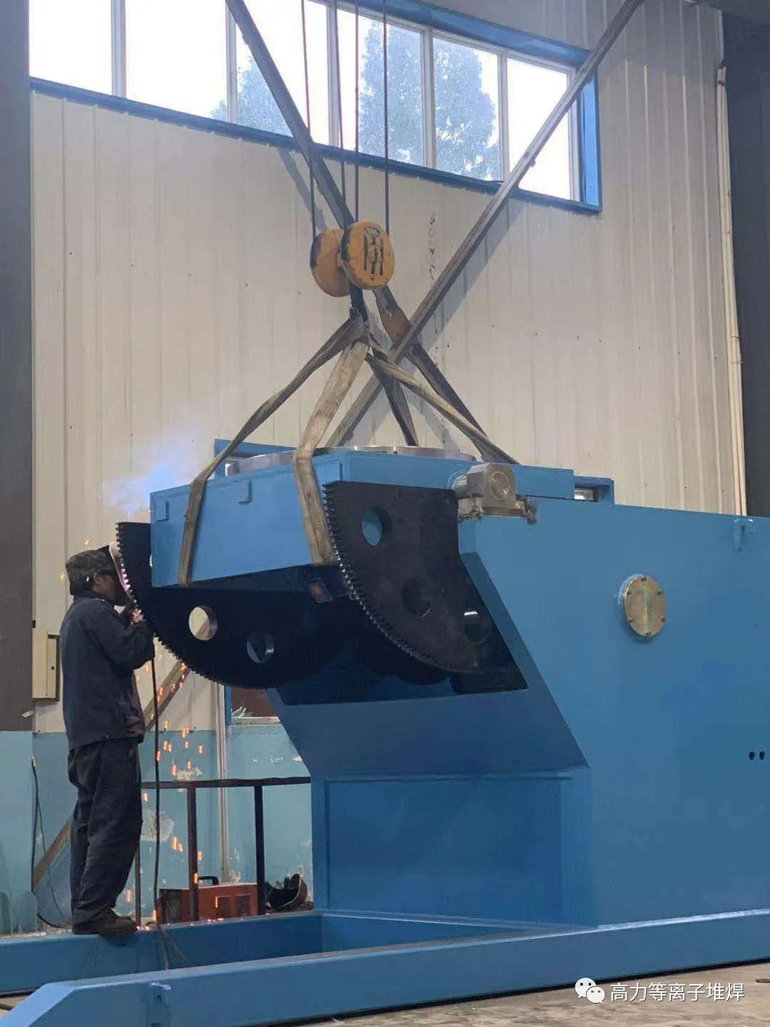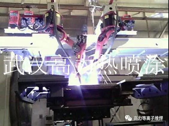 粉末等离子堆焊技术的水平提高和应用扩大,已开始向大型机械全数字化发展。主要体现在大型精密操作机械装备的持续涌现。例如:大型立式操作机(高4m)和大型变位机(转盘直径3m)组成的大型阀门密封面等离子堆焊机(高力热喷涂/阀门系列机型),实现了数控自动精密堆焊大型三偏心蝶阀密封面。轨道长6米的移动式龙门输煤机槽板数控堆焊机(高力热喷涂/煤机槽板系列机型),配备2000mm长焊枪,实现了数控自动堆焊大型输煤机槽板的面层及夹层。长4米宽2米高2.5米的高架龙门数控辊面堆焊机(高力热喷涂/辊面系列机型),可以堆焊直径800mm,长度4米的冶金轧辊,并可配备高效电弧刨,堆焊后可以快速电弧熔融刨磨。大型精密操作机械配备大功率等离子堆焊系统,在数字化主机的控制下能够完成复杂高效的堆焊任务。粉末等离子堆焊技术的应用已扩大到大型工件,其装备正向大型机械全数字化方向发展。